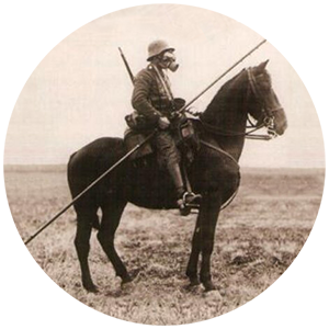 is een foto van een ‘Meldereiter’ een Duitse cavalerist, die voornamelijk werd ingezet voor verkennings- en beveiligingstaken.